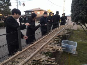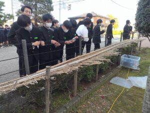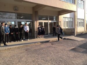 挨拶運動 イルミネーション設置 2025年11月21日 東雲ブログ 【挨拶運動】 寒くなってきましたが、生徒会役員会や担当のクラスを中心に、毎朝、挨拶運動に励んでいます。 生徒玄関前や校舎内に一列に並び、登校してくる生徒を迎え、さわやかに挨拶を交わします。 【イルミネーション準備】 27日(木)のイルミネーション点灯式に向けて、生徒会役員会を中心に準備が始まりました。校内でボランティアを募ったところ、90名ほどの生徒が参加してくれました。 どちらも、東中を明るくしようとする「東中ライトアップ作戦」の名にふさわしい活動となっています。 撮影協力:生徒会役員会