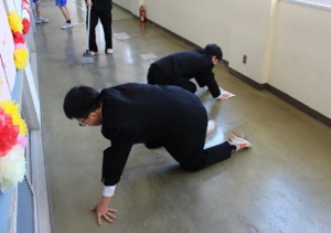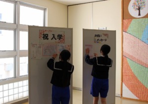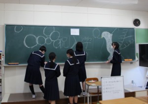 新2年生・3年生は、午後から入学式の前日準備です。教職員、在校生一同、丹精込めて、教室・体育館の清掃や飾り付けを行いました。