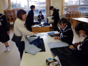 1年生は現在、家庭科の授業でトートバッグを作製しています。