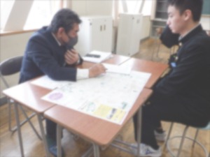 修学旅行2日目に予定されている京都市内班別学習のコースを決定するために、旅行会社の方と各班メンバーで打ち合わせを行いました。
