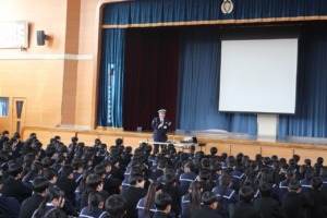交通安全教室では、魚津警察署の方を講師に招き、主に自転車の安全運転について講義を受けたり、DVDを視聴したりしました。日頃から自転車に乗る生徒が多いと思います。交通ルールを守り、安全に利用してもらいたいです。