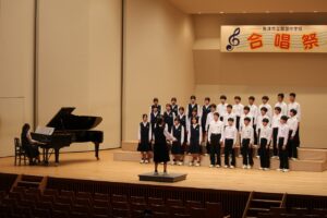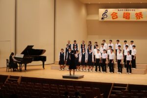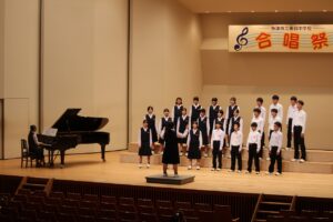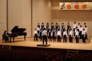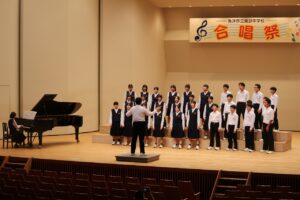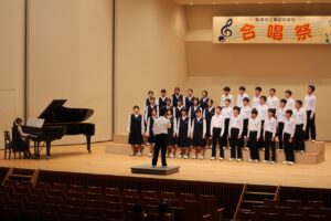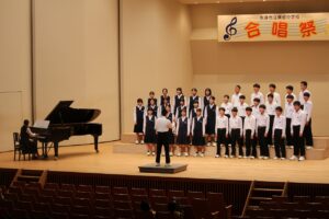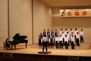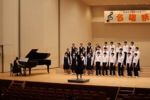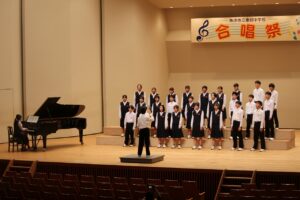 2年生。たくさん思いの詰まった、個性あふれる歌声でした。男女の声量のバランスがとれてくると、さらにもう一段階高まった合唱になると激励を受けました。
