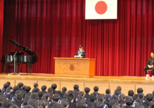 また、各学年代表が、2学期を振り返った意見発表をしました。「学級のリーダーとしてコミュニケーションをとる大切さ」「自分の意見をはっきり伝えることの大切さ」「命とお金の関係について(生命保険についての学び)」など、それぞれの2学期で学んだことをを堂々と発表しました。