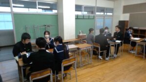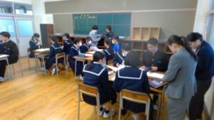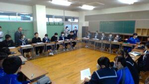 3年生が12月いっぱいで委員会活動から引退します。それにともない、今日は3年生から2年生に各委員会の引継ぎが行われました。3年生は自分たちの1年の活動を振り返り、来年度につなげていきたいことや活動の年間計画などについて伝えていました。2年生の次期専門委員長と副委員長は真剣な表情で話を聞いていました。