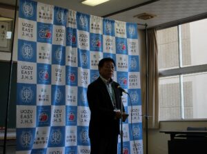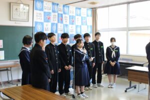 最後に、校長から、旧役員への労いの言葉、新役員への激励の言葉がありました。新役員には、掲げた公約を実現していくためにも、生徒会の中心となって期待します。